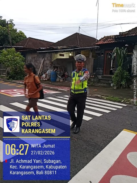 Dalam upaya mengutamakan keselamatan pejalan kaki khususnya kepada para pelajar serta mewujudkan arus lalulintas yang tetap lancar dan kondusif, personil satuan lalu lintas melaksanakan pengaturan arus lalulintas untuk menyebrangkan anak sekolah di SD Negeri 1 Subagan. Pada Jum’at, 27 Februari 2026.