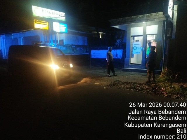 Guna memastikan situasi Kamtibmas tetap kondusif dan memberikan rasa aman bagi masyarakat di jam istirahat, Polsek Bebandem menggelar kegiatan Blue Light Patrol atau patroli lampu biru di wilayah hukum Kecamatan Bebandem. Pada Kamis, (26/03/2026) dini hari.