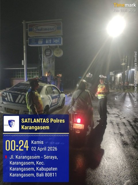 Jajaran Unit Turjawali Polres Karangasem melaksanakan tugas giat Patroli Hunting System dan Blue Light Patrol menggunakan Randis Kijang 1135 dengan kuat 2 personil di Wilayah Hukum Polres Karangasem. Pada Rabu, 1 April 2026 sekira pukul 21.00 Wita.
