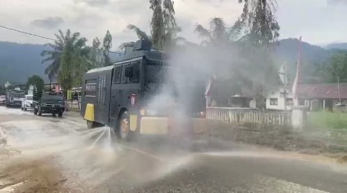 Untuk mengatasinya, Polres Aceh Selatan mengerahkan unit Water Cannon guna menyisir jalan-jalan protokol. Penyemprotan air bertekanan tinggi ini efektif mengangkat sisa lumpur kering yang membandel dan menurunkan kadar debu di udara secara signifikan.