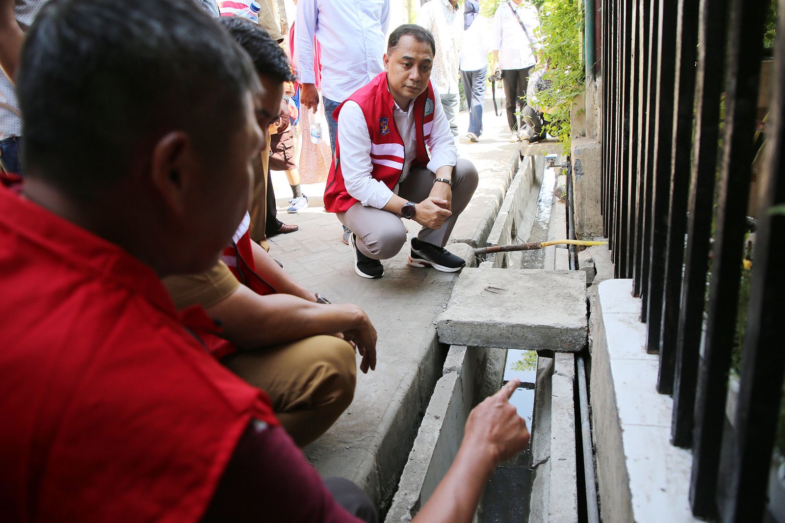 Selanjutnya, Wali Kota Eri langsung menuju perkampungan di Keputran Panjunan. Ia menelusuri gang-gang sempit yang dilewati saluran yang baru dibangun dengan menggunakan dakel. Sesekali dia memberikan instruksi kepada lurah dan camat tentang pembangunan salurannya itu. Ia meminta saluran yang baru diperbaiki itu, kalau sudah selesai dan sudah ditutup, maka tingginya harus sama rata dengan jalan paving supaya fungsi jalan semakin lebar dan ada manfaatnya juga untuk jalan.