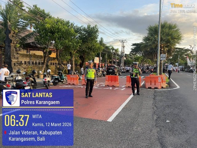 Dalam upaya menjaga ketertiban dan keamanan lalu lintas, Satuan Lalulintas Polres Karangasem melaksanakan pengaturan  dan rekayasa lalulintas  terhadap pengandara di Jalan Veteran Jalur 11 Karangasem Pada hari ini Kamis, 12 Maret 2026. Kegiatan ini juga merupakan bentuk himbauan kepada pmasyarakat para pengguna jalan agar sementara tidak melintas di jalan veteran mengingat akan adanya pawai Ogoh-Ogoh.