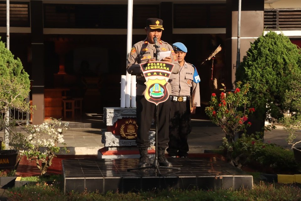 Wakapolres Jembrana, Kompol I Ketut Darta, S.H., M.H., menekankan pentingnya kesiapan personel dan pelayanan humanis saat memimpin Apel Kesiapan Program Layanan Polisi 110 di Lapangan Apel Polres Jembrana. Selasa (10/6/2025), pagi. Apel tersebut dihadiri oleh para Pejabat Utama Polres Jembrana, para Kapolsek jajaran, Perwira Staf Polres Jembrana serta diikuti oleh personel Bintara, ASN dan Bhabinkamtibmas Polres Jembrana.