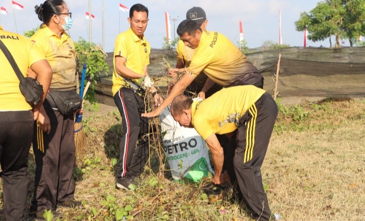 Kegiatan bakti sosial tersebut di pimpin langsung oleh Kapolres Jembrana AKBP Endang Tri Purwanto, S.I.K, M.S.i serta di hadiri pula oleh Waka Polres Jembrana Kompol I Made Katon, S.H., Para Pejabat Utama ( PJU ) Polres Jembrana, Kapolsek Negara serta diikuti oleh personil Polres Dan Polsek Negara, Dinas Lingkungan Hidup ( LH ) Kab. Jembrana yang berjumlah sekitar 150 orang.