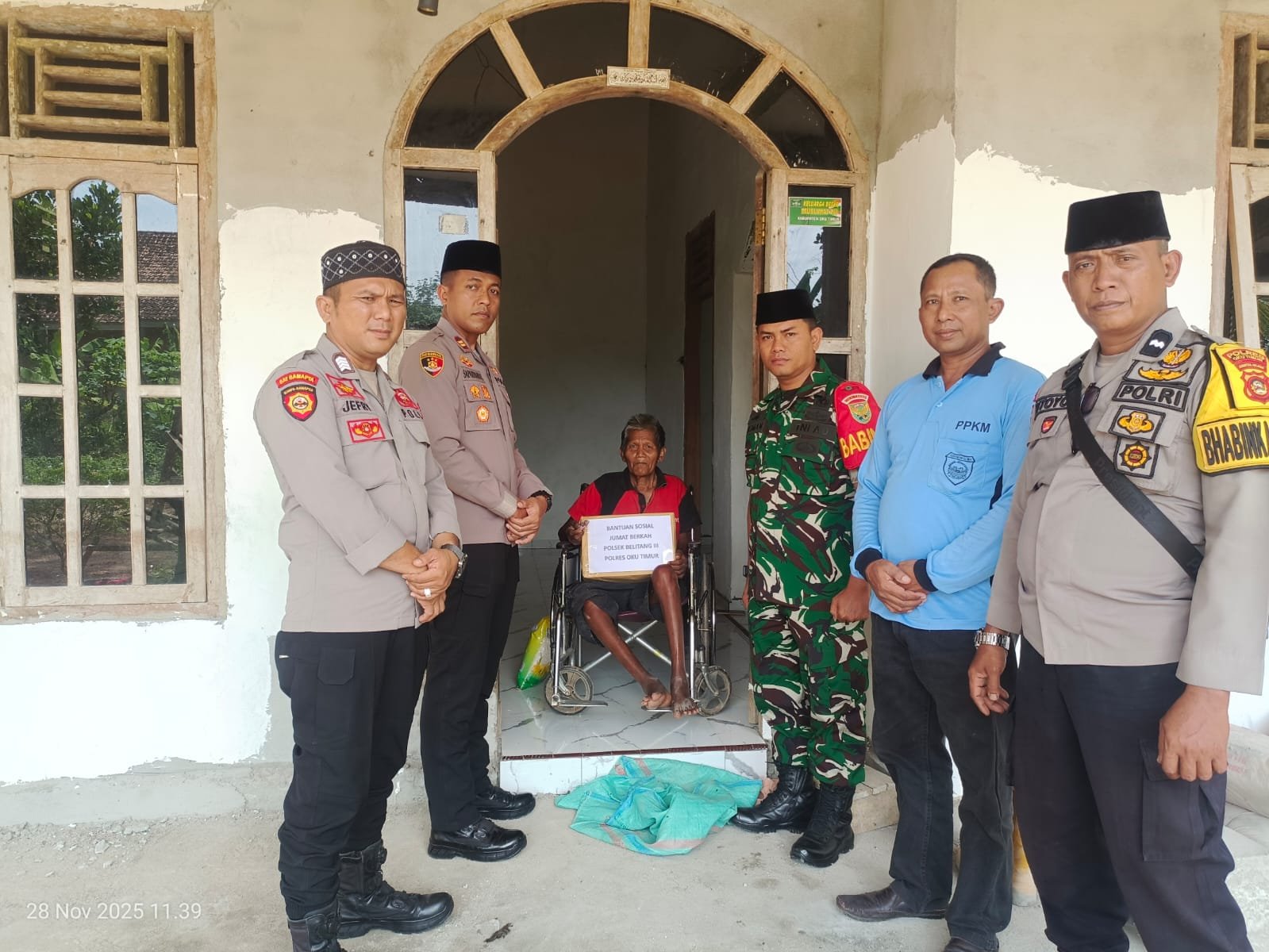 Kegiatan tersebut langsung dihadiri oleh Kapolsek Belitang III,Iptu Sapariyanto.S,H.,didampingi Bhabinkamtibmas dan Anggota personil lainnya bersama perangkat Desa dan warga Desa Nusa Maju.Dalam penyaluran Bansos yang berisikan Beras,Minyak,Gula,Roti dan lain sebagainya,warga setempat yang menerima,1.Gino (65)Tuna Netra dan Tugino (62) menderita penyakit lumpuh permanen keduanya merupakan warga Desa Nusa Maju.Giat tersebut,merupakan sebagai wujud kepedulian dan empati seluruh personil Polsek Belitang III kepada warga masyarakat yang lebih membutuhkan.Giat ini sebagai bentuk kepedulian Polri khususnya polres Oku Timur kepada masyarakat yang berada di Wilkum Polsek Belitang III.Kegiatan Jum’at Berkah akan dilaksanakan setiap Hari Jum’at yang berasal dari gerakan Kapolsek beserta Anggota Bersedekah.Kegiatan berjalan dengan lancar,dan selesai sekira pukul,11.30 wib,situasi Aman terkendali.(Ali Wardana).
