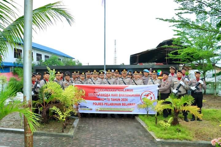 Dalam rangka menyambut Hari Bhayangkara ke-78, Polres Pelabuhan Belawan melaksanakan kegiatan Ziarah Makam Pahlawan pada Senin, 24 Juni 2024 pukul 07.30 WIB. Kegiatan ini dipimpin langsung oleh Kapolres Pelabuhan Belawan, AKBP. Janton Silaban, SH., SIK., MKP., bertempat di Makam Pahlawan Jalan Taman Makam Pahlawan Belawan.