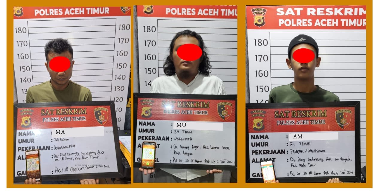 Ketiga terduga pelaku yang diamanakan tersebut diantaranya berinisial: MA 36 tahun, warga Gampong Keutapang Dua, Kecamatan Idi Timur, MU, 34 tahun, warga Gampong Karang Anyar, Kecamatan Langsa Kota dan AM, 24 tahun warga Gampong Blang Geulumpang, Kecamatan Idi Rayeuk.