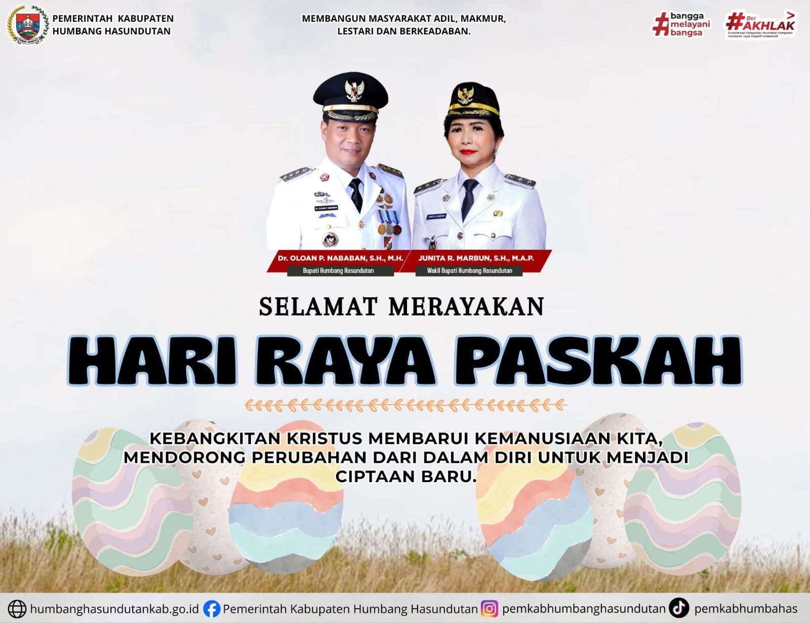 Pemerintah Kabupaten Humbang Hasundutan menyampaikan ucapan Selamat Hari Raya Paskah kepada seluruh umat Kristiani, khususnya masyarakat di wilayah Humbang Hasundutan.