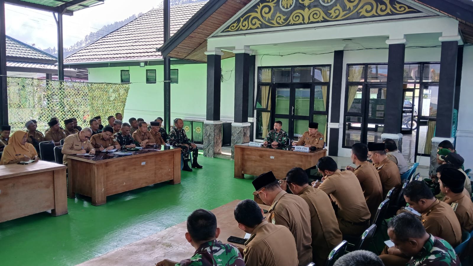 Rapat yang digelar di aula door Makodim 0106/Aceh Tengah tersebut dihadiri oleh Sekretaris Daerah (Sekda) Kabupaten Aceh Tengah Drs. Mursyid, M.Si, para camat, Danramil jajaran, Babinsa dan para reje . Kegiatan ini bertujuan untuk memastikan lokasi pembangunan KDMP benar-benar strategis, sesuai kebutuhan, serta memberikan manfaat maksimal bagi masyarakat.