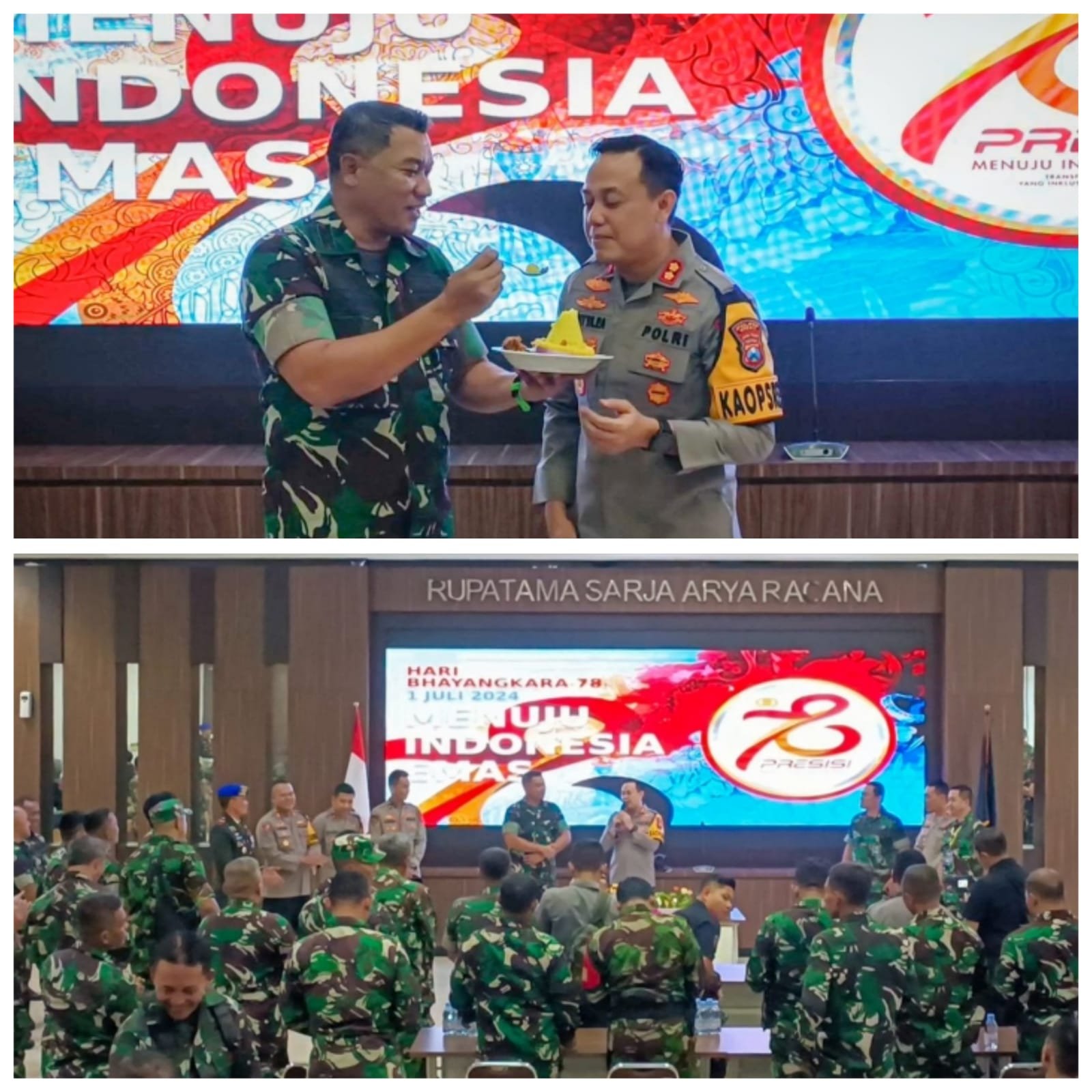 Menerima tumpeng ulang tahun ke 78 Bhayangkara, Kapolres Gresik AKBP Adhitya Panji Anom menyampaikan ucapan terima kasih yang setinggi-tingginya kepada TNI, khususnya Kodim 0817/Gresik atas sinergitas serta kerjasamanya dalam pelaksanaan tugas selama ini sudah terbina dengan baik.