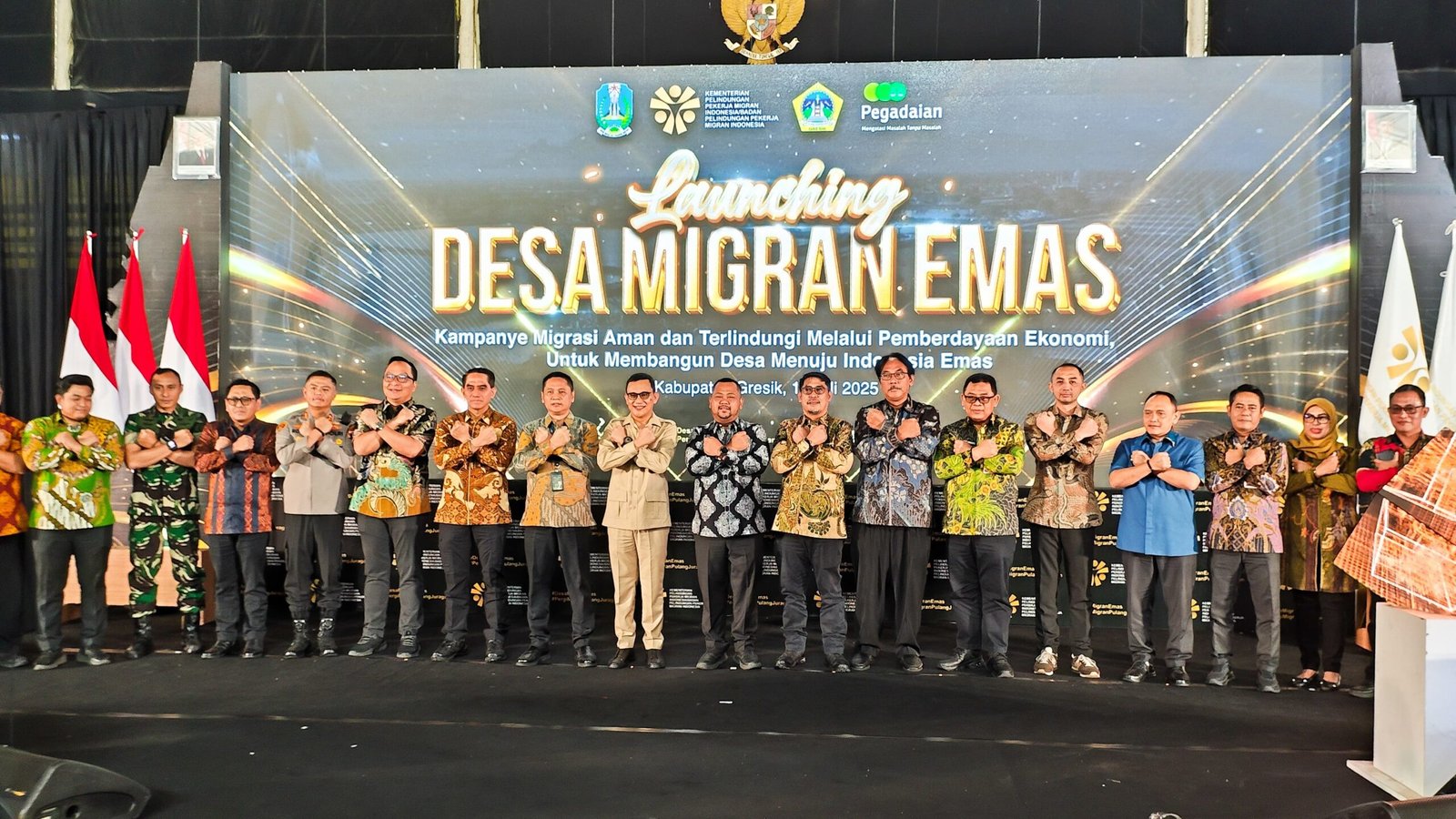 Gresik |Jatim | Komitmen bersama dalam mendukung perlindungan dan pemberdayaan Pekerja Migran Indonesia (PMI) diwujudkan dalam kegiatan Sosialisasi Kerja ke Luar Negeri dan Launching Desa Migran Emas yang digelar di Gedung Wahana Ekspresi Pusponegoro (WEP) 2, Jl. Jaksa Agung Suprapto, Kelurahan Sidokumpul, Kecamatan Gresik, Kabupaten Gresik, Jumat (11/7/2025).