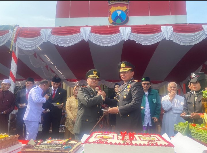 Bangkalan |Jatim | Dandim 0829/Bangkalan Letkol Inf. Nanang Fahrur Rozi.S.Pd. berserta anggota Kodim 0829/Bangkalan Berikan ucapan selamat HUT Bhayangkara ke-78 kepada Kapolres Bangkalan bertempat di lapangan Wicaksana Laghawa Mapolres Bangkalan Jl. Soekarno Hatta No.45 Kel. Mlajah Kec. Bangkalan Kab. Bangkalan, Senin (01/07/2024)