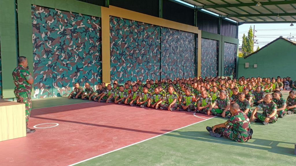 Seluruh anggota Kodim 0817/Gresik yang terdiri dari Para Perwira Staf Kodim, Para Danramil Jajaran, Bintara Tamtama dan segenap ASN Kodim menyimak dan memperhatikan pengarahan Dandim dengan tertib.