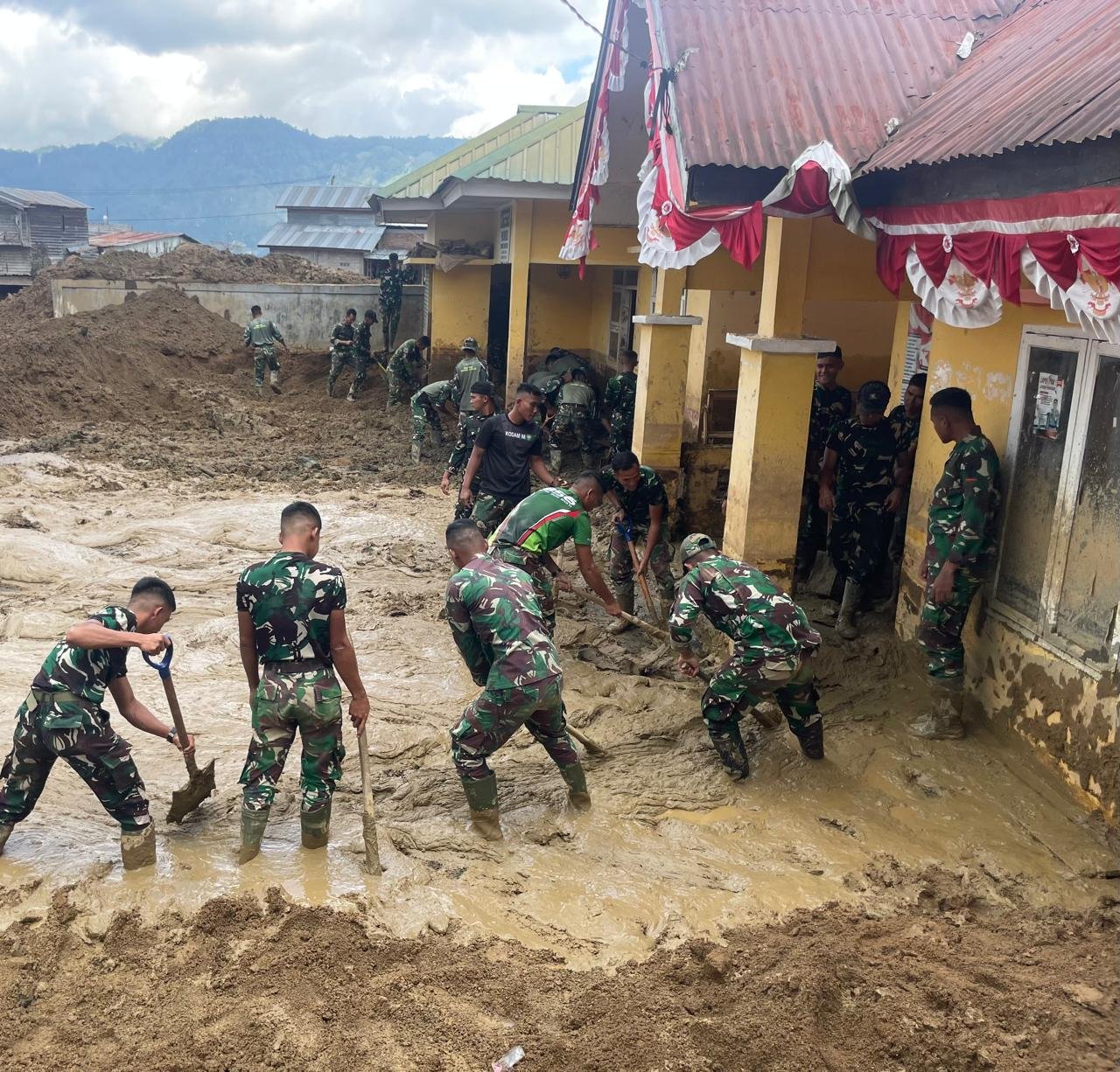 Yonif TP 856/SBS menyatakan terus berkomitmen untuk membantu pemulihan dampak bencana, pembersihan fasilitas umum itu yang kami utama kan, sebab dengan pulih nya fasilitas umum kondisi lebih cepat pulih. Kami berharap pada seluruh lapisan masyarakat agar terus bersama ikut bergotong royong.