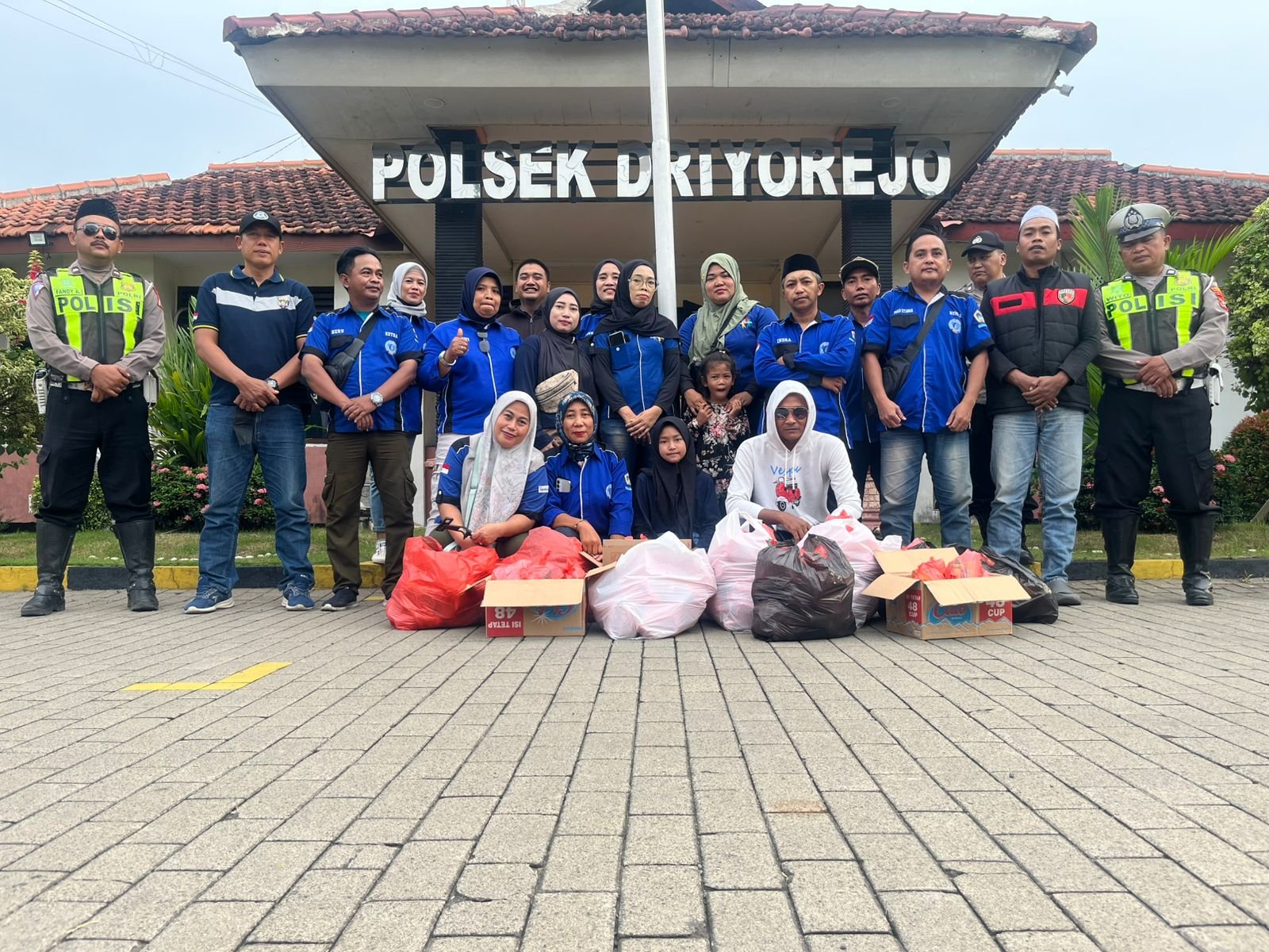 Komunitas Driyorejo Bersatu memilih lokasi yang tak biasa untuk aksi sosialnya. Bukan di alun-alun atau tepi jalan raya, melainkan di halaman kantor polisi. Di tempat yang identik dengan penegakan hukum itu, kebersamaan justru menjadi pesan utama.