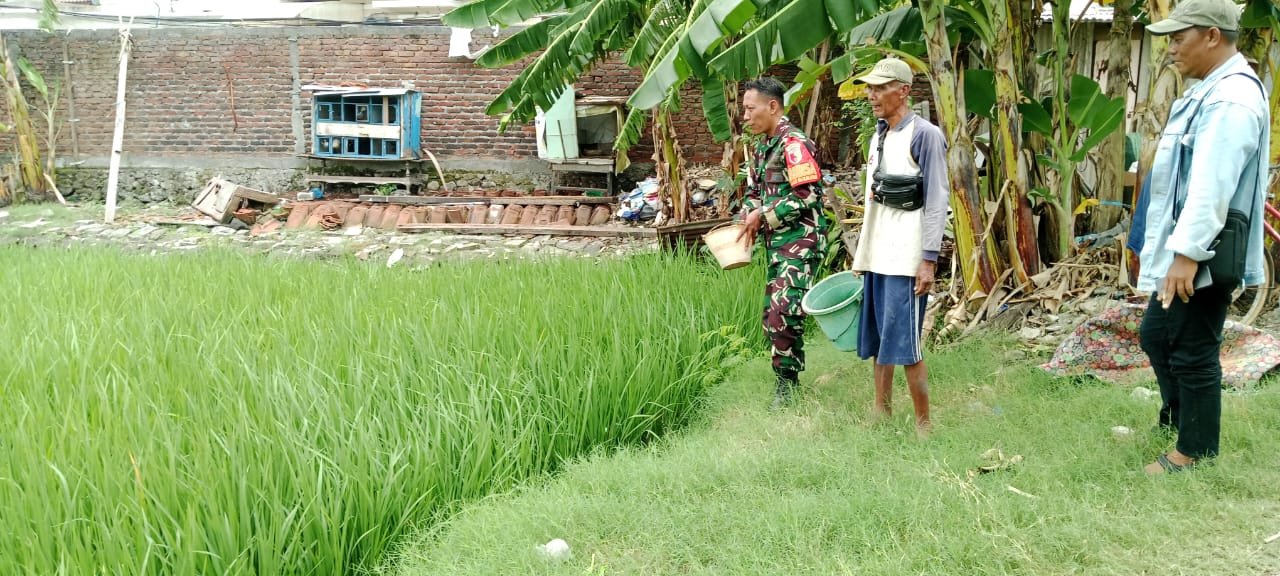 Surabaya |Jatim | Selasa, 4 Februari 2025. Babinsa Koramil 0830-12/Kenjeran, Sertu Budi Hermanto, bersama anggota Kelompok Tani (Poktan) Sumber Rezeki, melaksanakan kegiatan pemupukan padi di area persawahan kompleks AL, Jalan Memet No. 47, Kelurahan Sukolilo Baru, Kecamatan Bulak, Surabaya.