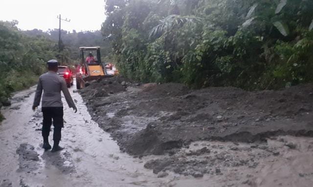 Asnawi menjelaskan, sejumlah kendaraan roda dua maupun empat sempat terjebak macet akibat banjir material longsor menutupi jalan.