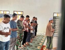 Kegiatan ibadah tersebut dilaksanakan dengan penuh kekhusyukan, menjadi momen jeda dari kerja fisik yang sejak pagi difokuskan pada pembangunan sarana dan prasarana desa. Tanpa sekat antara prajurit dan warga, mereka berdiri dalam satu saf, menyatukan niat, doa, dan harapan demi keberkahan setiap langkah pengabdian.