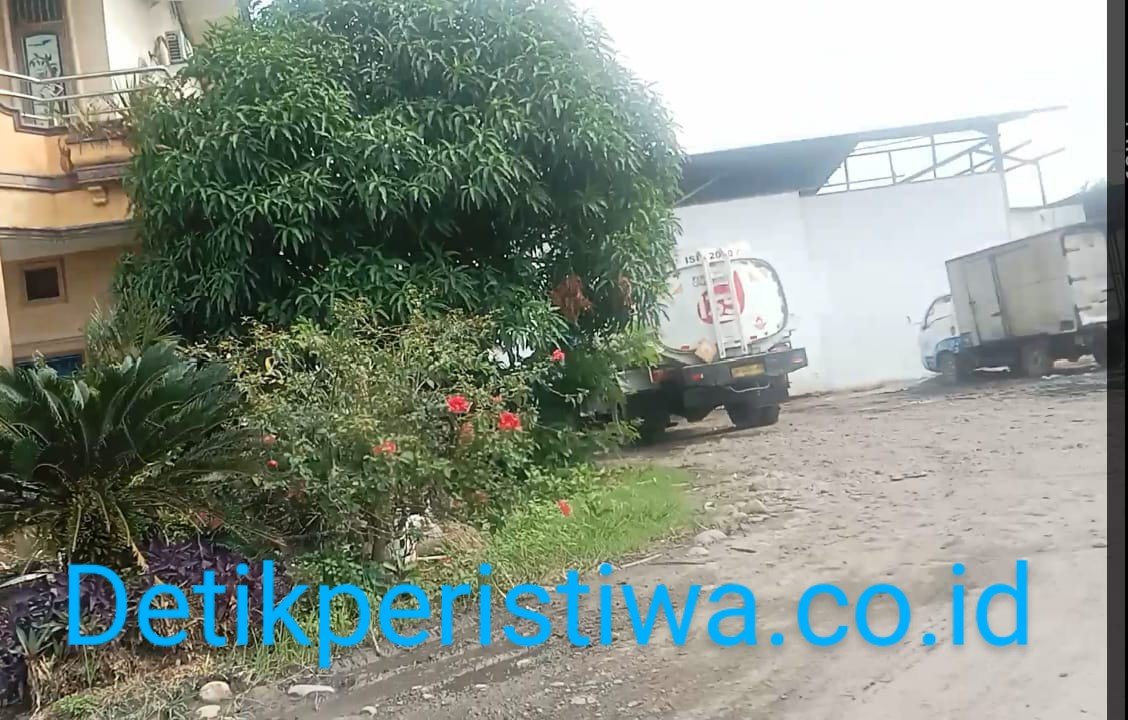 Ditelusuri, Rabu(22/05/2024) tampak di lokasi tengah parkir mobil tangki warna biru putih dan mobil box tepat di depan pintu gudang yang bercat putih tersebut