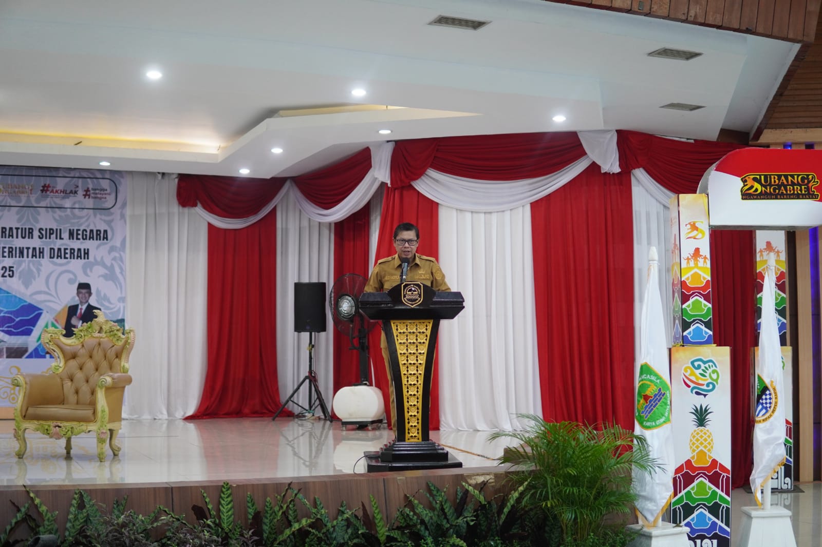 Wakil Bupati Subang Agus Masykur Rosyadi hadir dan membuka secara langsung Sosialisasi Pembinaan Disiplin Pegawai Aparatur Sipil Negara Terkait Tindak Pidana di Lingkungan Pemerintah Daerah Kabupaten Subang Tahun 2025, pada Selasa (23/09), di Aula Oman Syahroni Kantor Bupati Subang.