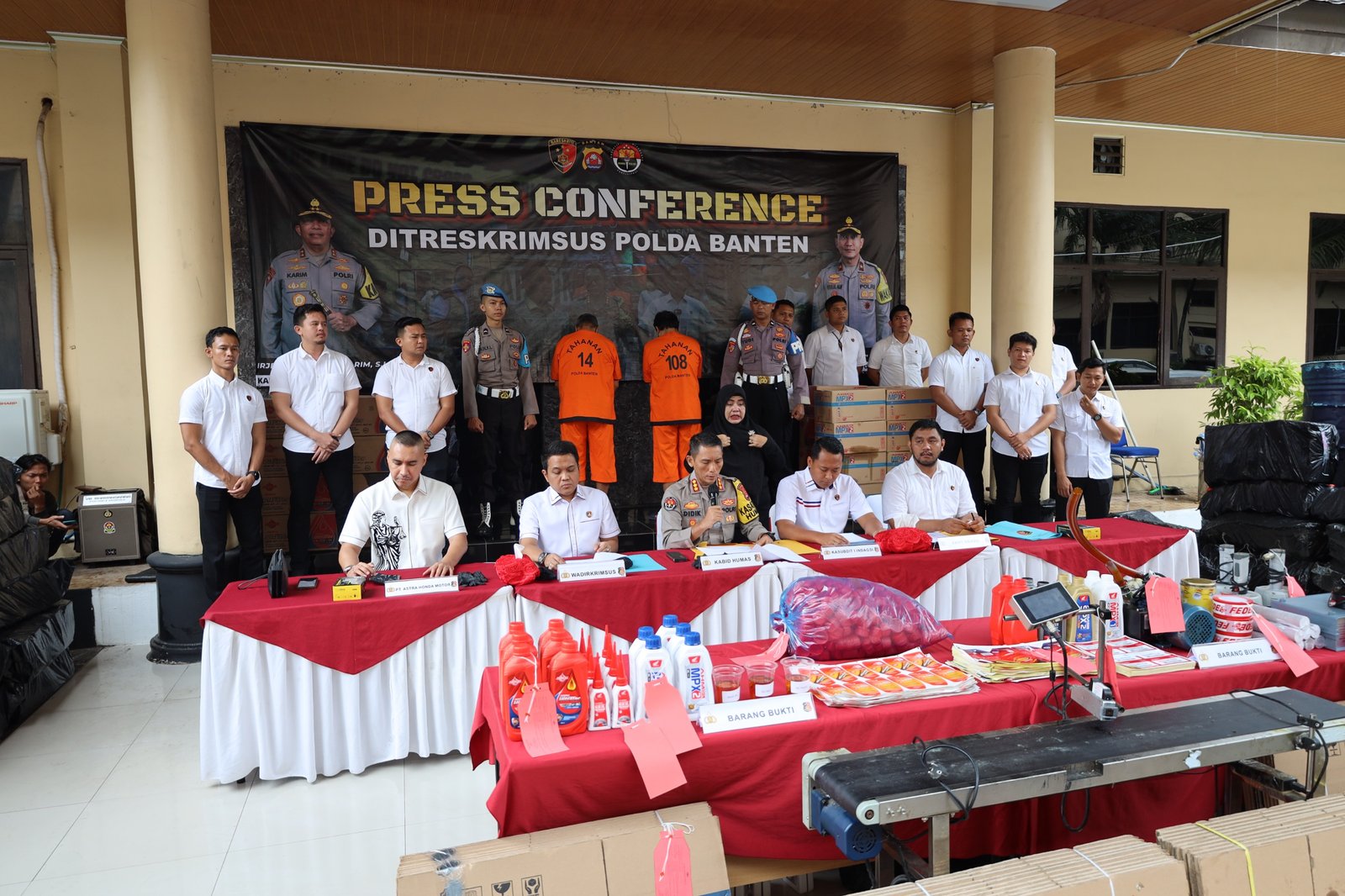 Serang,detikperistiwa.co.is- Subdit 1 Indag Ditreskrimsus Polda Banten berhasil ungkap kasus tindak pidana Perlindungan Konsumen dan/atau Perdagangan dan/atau Perindustrian dengan cara memproduksi dan/atau memperdagangkan barang berupa Oli dengan berbagai merek yang tidak memenuhi atau tidak sesuai dengan standar yang dipersyaratkan atau diduga palsu bertempat di Ruko Bizstreet Blok W08 Kec. Panongan, Kab. Tangerang, Prov. Banten dan Gudang yang beralamat di Ruko Picaso Blok P04/08A, Citra Raya, Kab. Tangerang, Prov. Banten