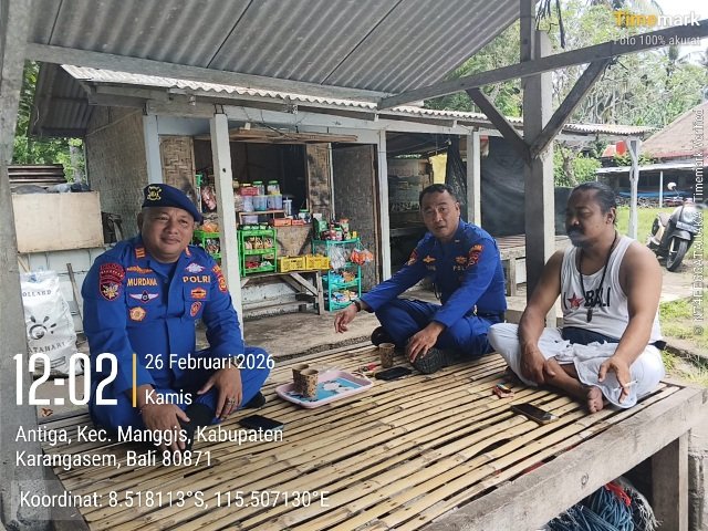 Satpolairud Polres Karangasem melaksanakan patroli dialogis dan pemantauan di kawasan Objek Wisata Labuan Amuk, Kecamatan Manggis, Kabupaten Karangasem, pada Kamis (26/2/2026) pukul 11.30 WITA.