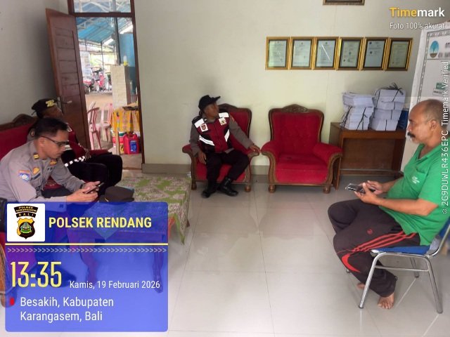 Sesuai perintah Kapolsek Rendang Kompol I Made Berata, SH, MH., Kanit Binmas Iptu I Gede Suardana bersama anggota patroli kamtibmas sambangi tempat pengolahan pupuk organik serta melakukan peninjauan langsung ke tempat produksi pupuk organik milik CV Tani Satya Loka Prama Sidhi yang berlokasi di Banjar Dinas Belatung, Desa Menanga, Kecamatan Rendang, Karangasem, kamis (19/2/2026).