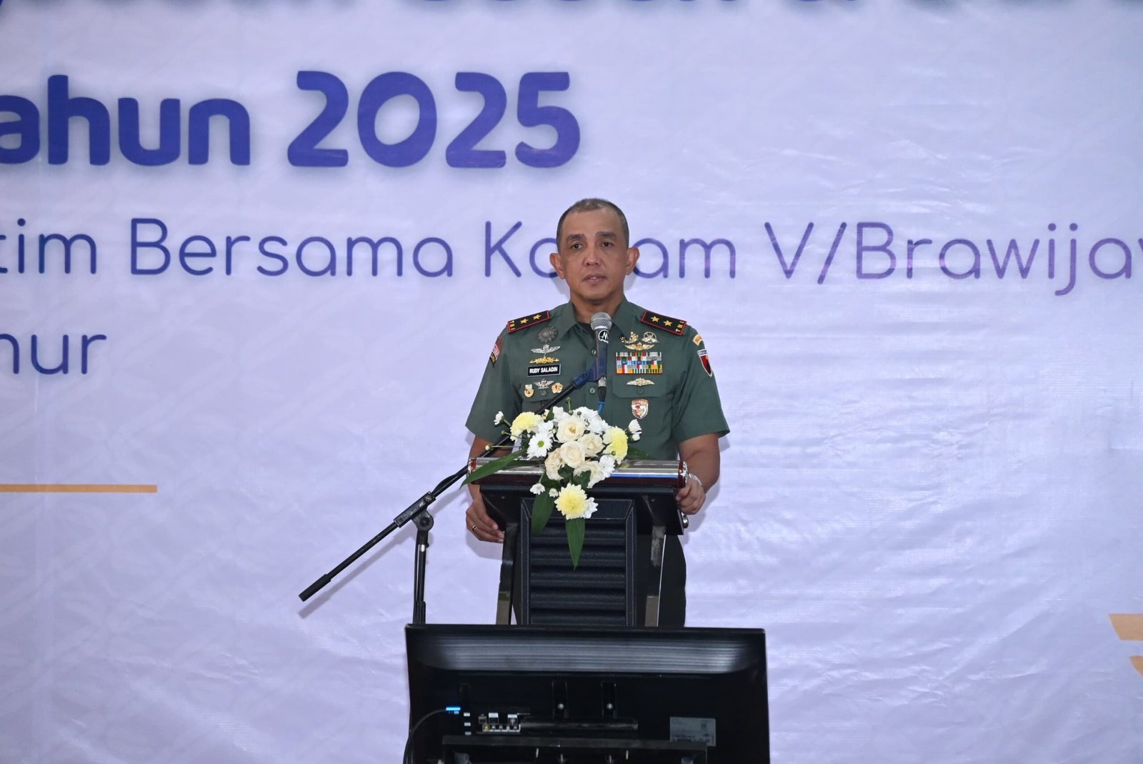 Sidoarjo |Jatim | Pangdam V/Brawijaya, Mayjen TNI Rudy Saladin, M.A, menghadiri rapat koordinasi sosialisasi pengadaan beras atau gabah yang digelar gudang Bulog Kecamatan Buduran, Sidoarjo. Rabu (22/01/2025).
