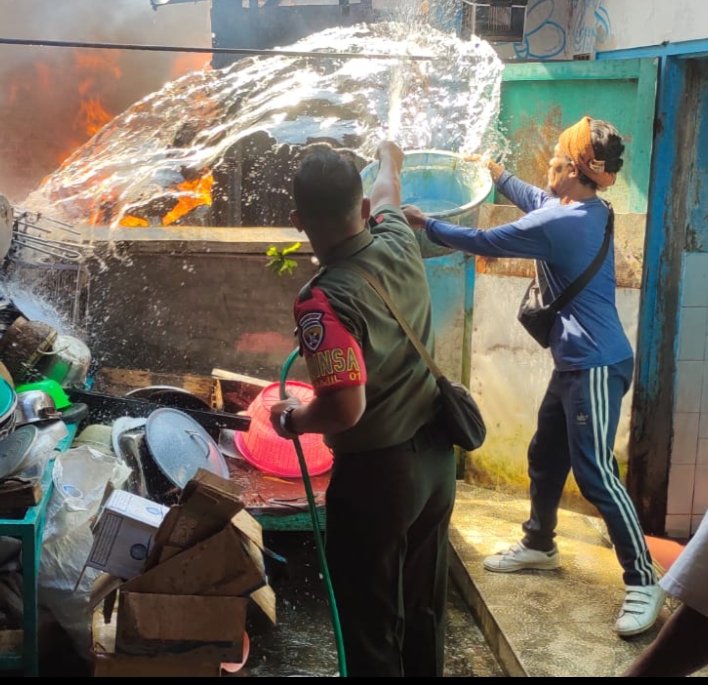 “Bersama petugas Damkar, kepolisian dan dibantu masyarakat kita bergotong royong memadamkan kobaran api yang telah membakar rumah warga ini. Alhamdulillah setelah berselang beberapa waktu api dapat di padamkan,” ujar Babinsa.