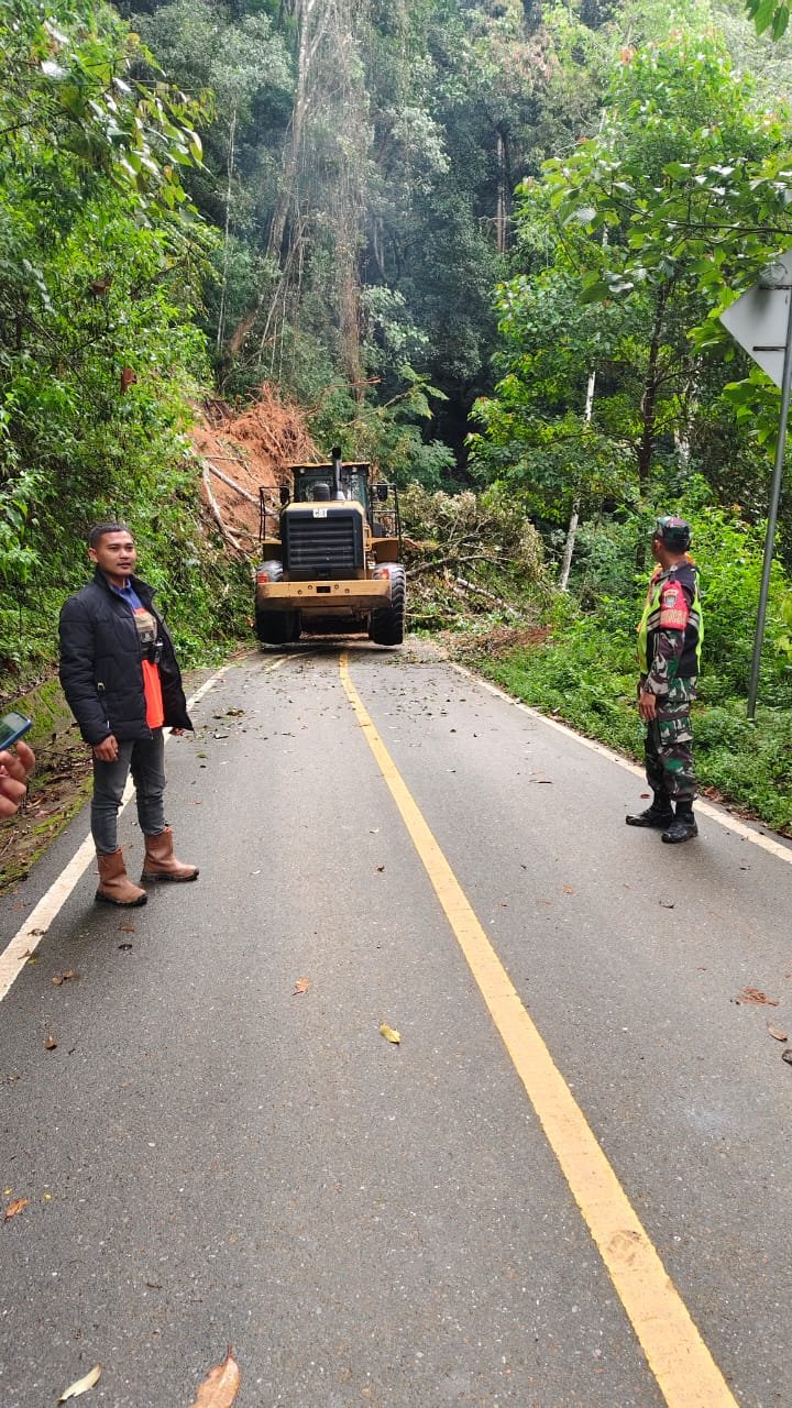 Tambahnya Alhamdulillah pagi ini alat berat sudah dilokasi tanah longsor dan mudah mudahan siang ini diperkirakan roda dua dan toda 4 sudah bisa dilalui dan perlu berhati hati saat melintas karena cuaca apabila hujan yang tinggi” Ucapnya”.