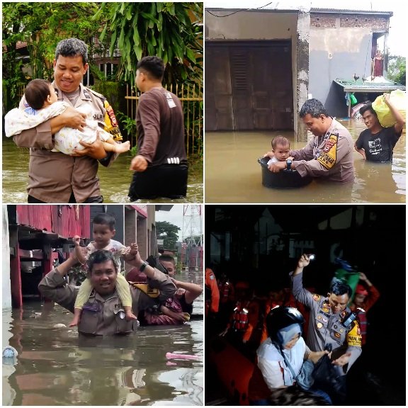 Polri bergerak cepat melakukan evakuasi korban banjir di Kota Makassar, Sulawesi Selatan. Curah hujan yang tinggi mengakibatkan empat kelurahan di Kecamatan Manggala terendam air setinggi dada orang dewasa. Pada Rabu (12/2/2025).