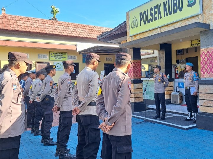 Giat apel pagi dihadiri oleh para pejabat utama Polsek Kubu , Waka Polsek Kubu, ara Kanit, Kasi, Kasub dan anggota Polsek Kubu.