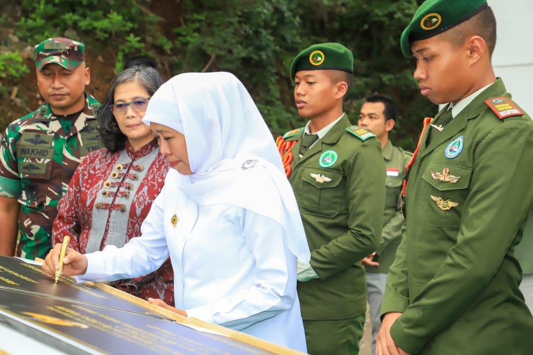 Dalam kesempatan tersebut, Gubernur Khofifah melakukan peninjauan ke dalam asrama yang telah diresmikannya.