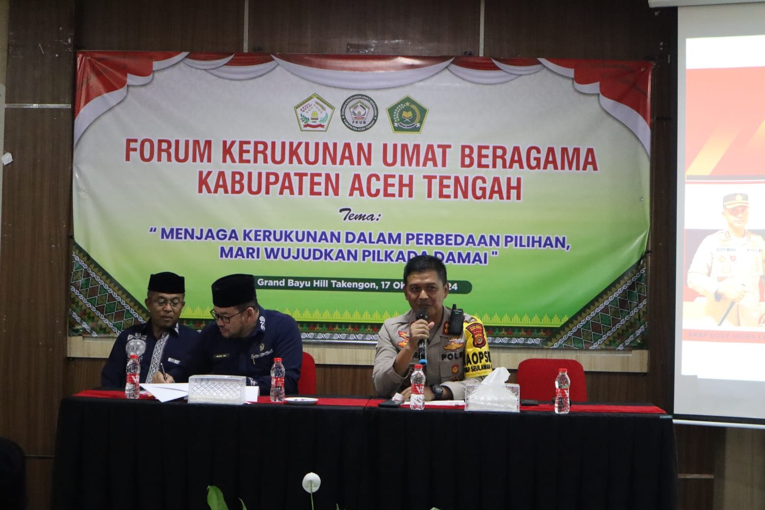 Takengon – Kapolres Aceh Tengah Akbp Dody Indra Eka Putra,S.I.K,M.H, menghadiri Forum Kerukunan Umat Beragama Kabupaten Aceh Tengah, Sekaligus menjadi Narasumber dalam kegiatan itu.