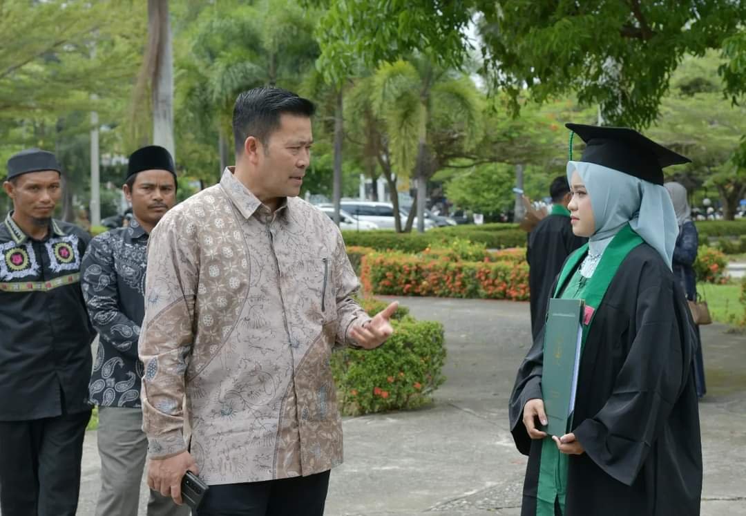 Pj. Bupati Bener Meriah, Drs. Haili Yoga, M.Si ucapkan selamat kepada Siti Aisyah, S.Tp. secara langsung, usai mengikuti prosesi Wisuda di Gedung Dayan Dawood, Universitas Syiah Kuala, Banda Aceh. (15/05/2024).
