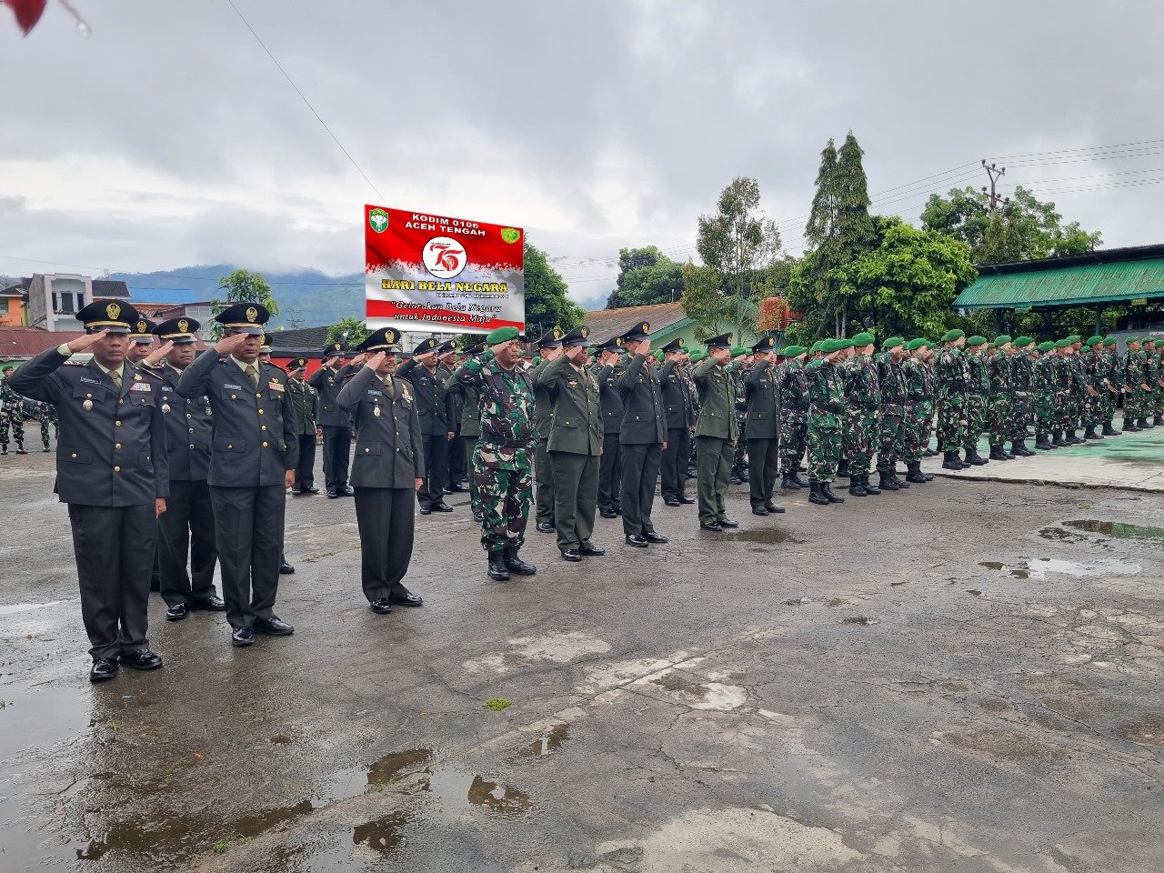 Dandim 0106/ Aceh Tengah Letkol Inf Raden Herman Sasmita sebagai inspektur upacara dalam peringatan Hari Bela Negara ke-76. Dengan mengusung tema “Gelorakan Bela Negara untuk Indonesia Maju”, bertempat di lapangan makodim kp bale atu kec, lut tawar Kab, Aceh Tengah.Kamis (19/12/24).
