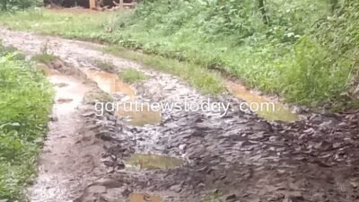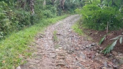 Jalanya masih terbuat dari tanah dan batu hingga menjadi becek dan berlubang saat musim hujan datang, sehingga sulit dilalui oleh kendaraan roda dua maupun roda empat.