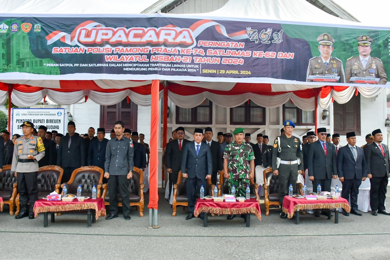 Hari Ulang Tahun Satuan Polisi Pamong Praja ke 74 Satuan Linmas ke 62 dan Wilayatul Hisbah ke 21 Tahun 2024 dipusatkan di halaman Pendopo Bupati yang dihadiri Sekretaris Daerah Kabuoaten Bireuen, Forkopimda, Kepala SKPK dan para Camat dalam Kabupaten Bireuen 29/4/2024.