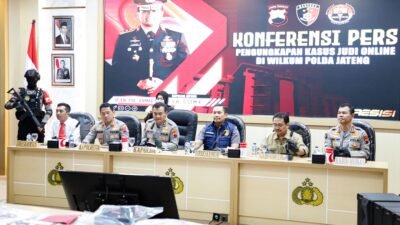 Polda Jateng-Polresta Banyumas|Bertempat di Aula Rekonfu Polresta Banyumas telah dilaksanakan Press Release pengungkapan kasus Judi Online oleh Kapolda Jawa Tengah Irjen Pol Ahmad Luthfi dengan menghadirkan Ahli Hukum Pidana Prof. Dr. Hibnu Nugroho, S.H, M.Hum pada Selasa (25/6/2024) pagi