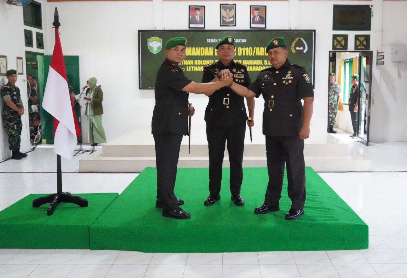 Komandan Korem (Danrem) 012/TU Kolonel Inf Deni Gunawan memimpin Serah Terima Jabatan (Sertijab) Komandan Kodim 0110/Abdya dari Letkol Inf Roqich Hariadi kepada Letkol Inf Beni Maradona, S.Sos di aula Yudha Makodim 0110/Abdya, Selasa (20/2/2024).
