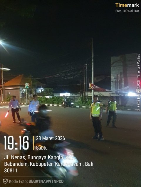 Guna memastikan situasi Kamtibmas yang kondusif di titik keramaian, jajaran Polsek Bebandem melaksanakan pengamanan dan monitoring intensif di kawasan hiburan akhir pekan, Jalur 11 Veteran Barat, Desa Bungaya Kangin. Pada Sabtu, (28/3/2026) malam.