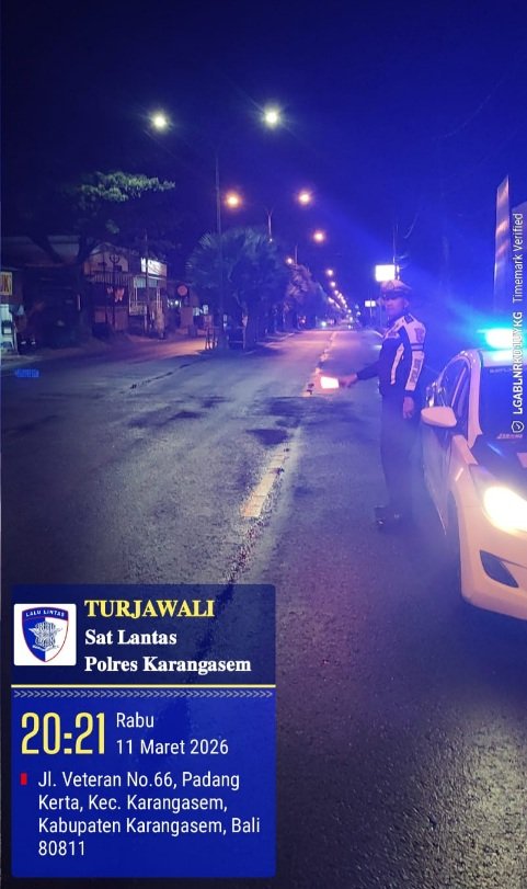 Dalam upaya menjaga ketertiban dan kelancaran arus Lalalulintas jelang Hari Raya Nyepi dan Idul Fitri, jajaran Unit Turjawali Polres Karangasem meningkatksn giat Patroli Hunting System dan Blue Light Patrol di Wilyah Hukum Polres Karangasem. Pada Rabu, 11 Maret 2026 sekira pukul 20:00 Wita.