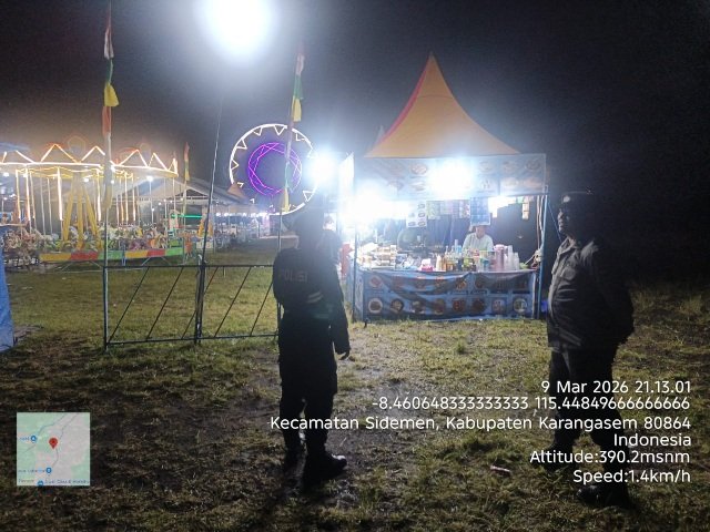 Dalam upaya menjaga ketertiban dan keamanan masyarakat, Personil Polsek Sidemen melaksanakan pengamanan di pasar malam yang berlokasi di Lapangan Umum Mamed Desa Sinduwari Kecamatan Nusa Sidemen. Pada Selasa, (9/3/2026).