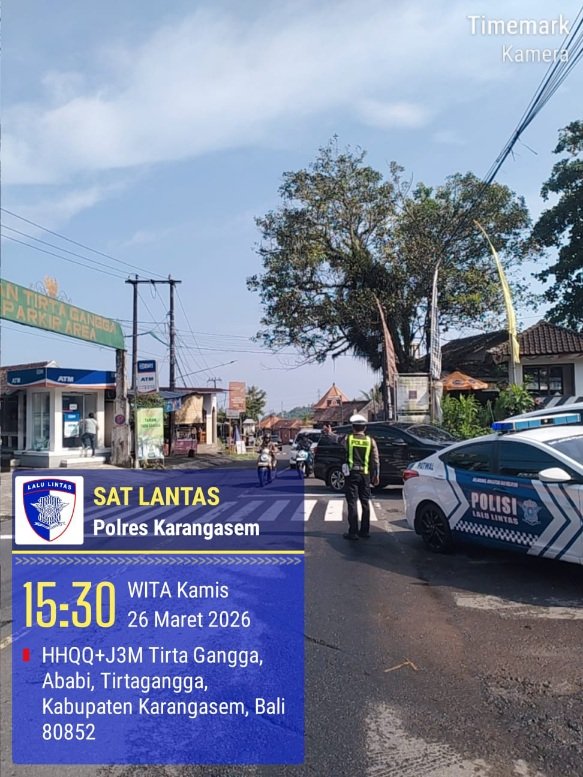 Dalam upaya menjaga situasi kamtibmas yang aman dan kondusif di wilayah hukum Polres Karangasem, personel Sat Lantas beserta Personel Polres Karangasem melaksanakan kegiatan pengamanan di objek wisata Taman Tirta Gangga, Desa Abang, Kecamatan Abang, Kabupaten Karangasem, Pada hari kamis, 26 Maret 2026.