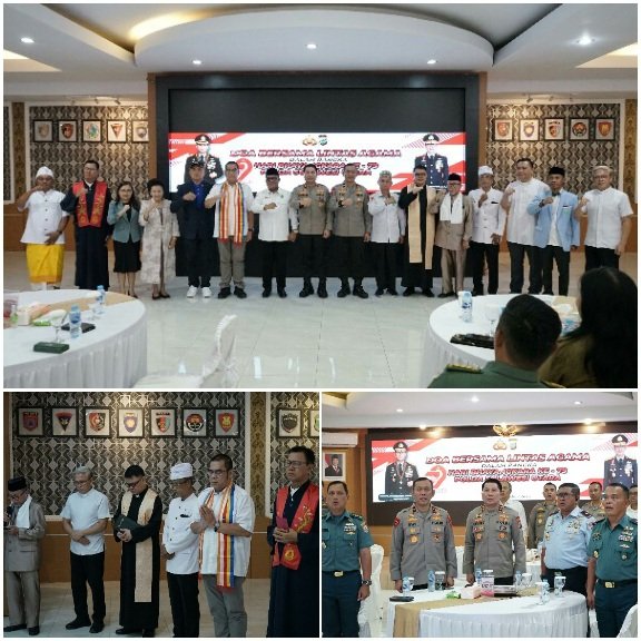 Personel Polda Sulawesi Utara bersama tokoh agama, tokoh adat dan tokoh masyarakat melaksanakan do’a bersama lintas agama dalam rangka Hari Bhayangkara ke-79 tahun 2025, di aula Tribrata Polda Sulut, pada Senin, (30/6/2025).