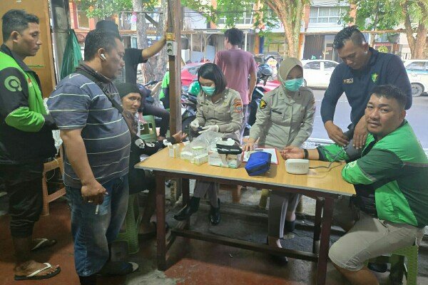 Tim Kesehatan dari Bidang Dokkes Polda Sulut menggelar pemeriksaan kesehatan gratis bagi driver ojek online (Ojol) yang berada di Kota Manado dan sekitarnya.