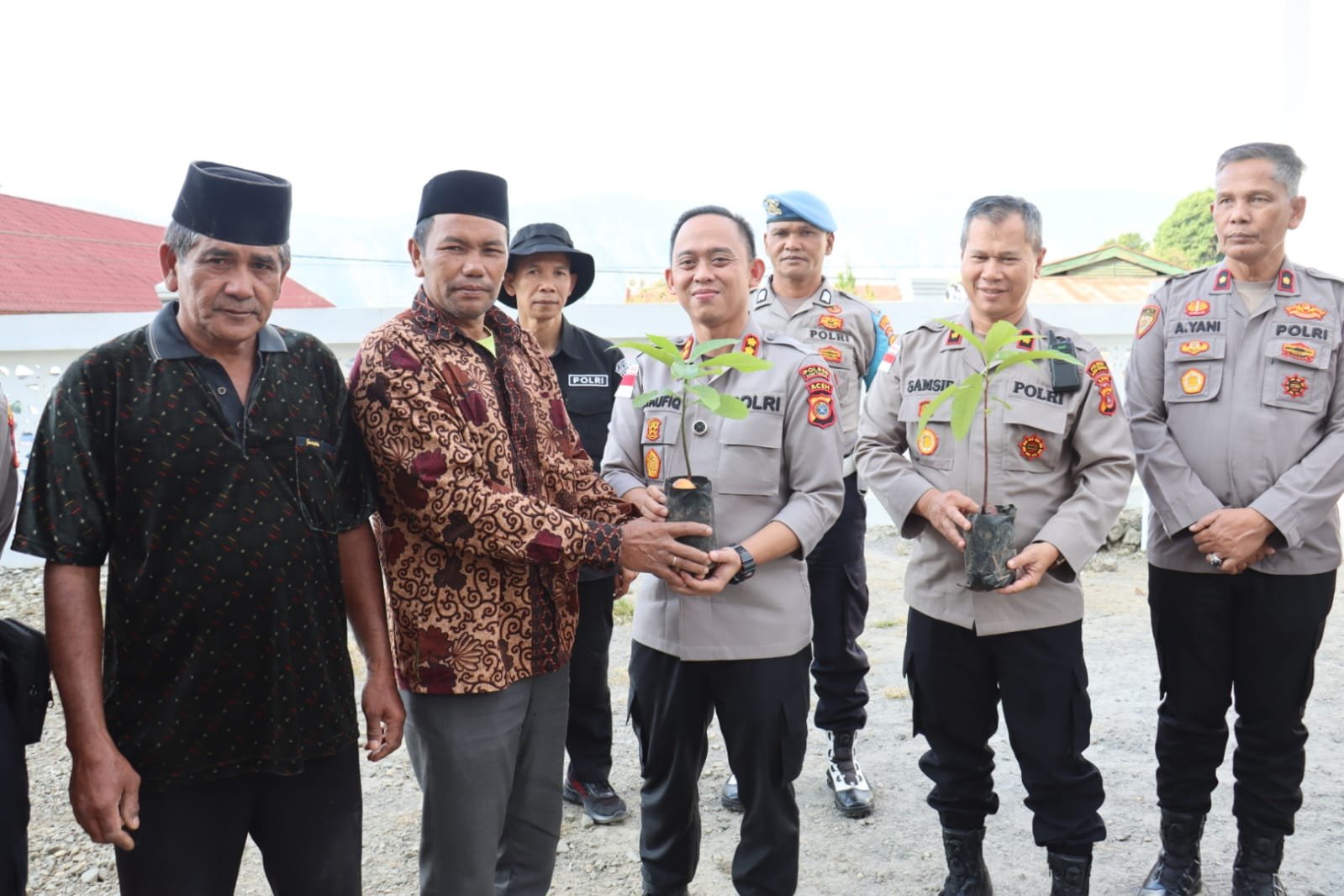 Selain paket sembako, Polres Aceh Tengah juga menyerahkan puluhan bibit tanaman buah kepada masyarakat sebagai bagian dari dukungan terhadap program Green Policing yang mendorong pelestarian lingkungan.