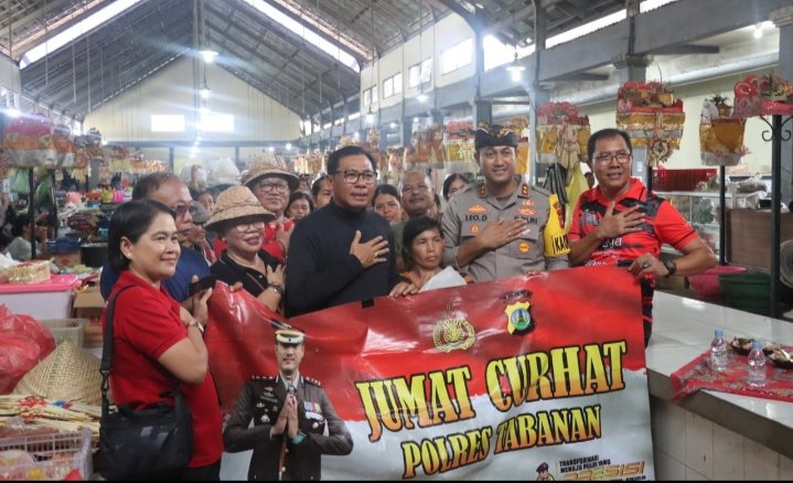 Kapolres Tabanan AKBP Leo Dedy Defretes, S.H., S.I.K., M.H. didampingi Sekda Kab. Tabanan Gede Susila.S.Sos.,M.Si Blusukan ke pasar umum Kediri sekaligus membagikan paket sembako serta monitoring dan pengecekan harga sembako , Jum’at ( 26/04/2024 ).