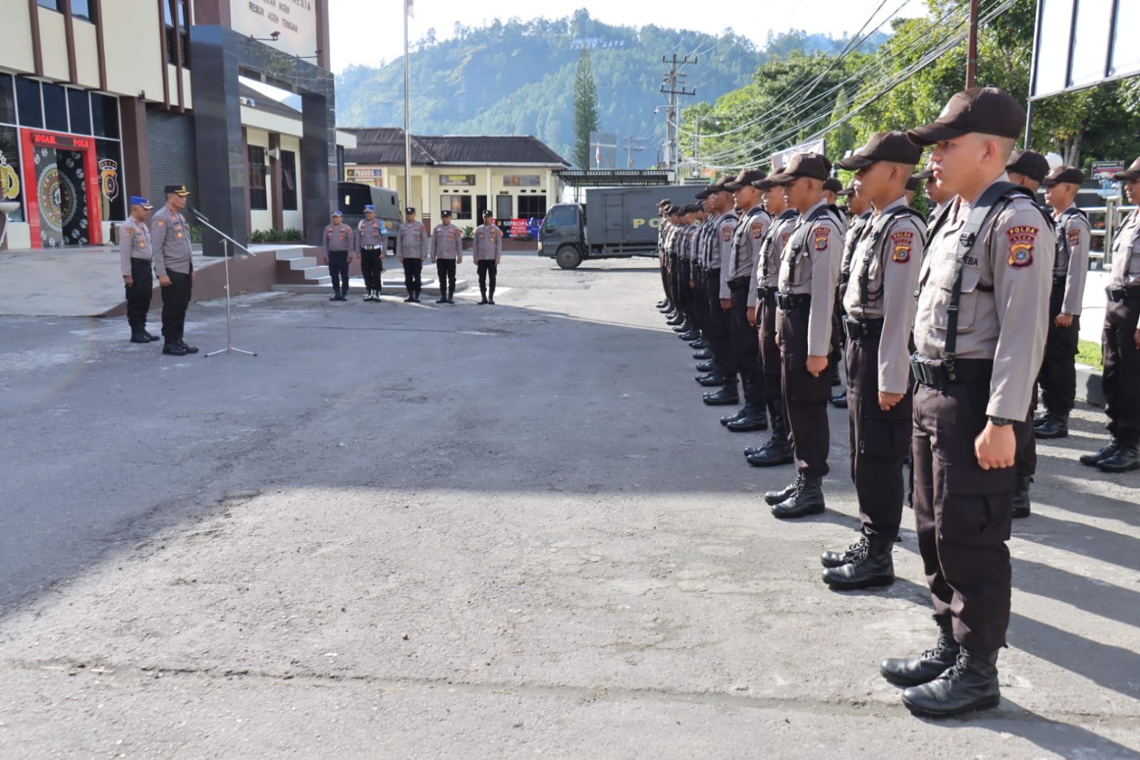 Kapolres Aceh Tengah AKBP Muhamad Taufiq, S.I.K., M.H., melalui Kabag SDM Kompol Ahmad Yani, S.H., memimpin apel pelepasan siswa Diktuba Polri SPN Polda Aceh yang telah menyelesaikan latihan kerja (Latja) di Polres Aceh Tengah, Sabtu (8/11/2025).