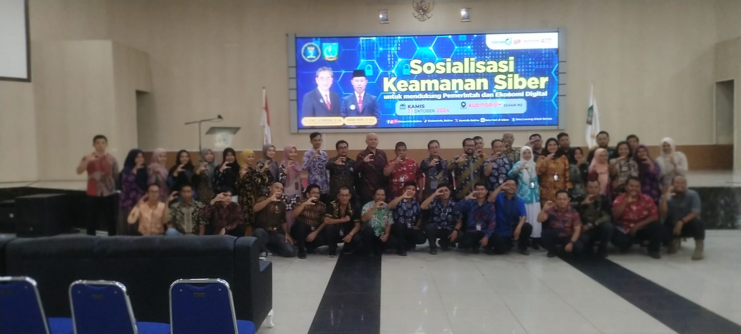 Hal itu disampaikan Bayu Priyambodo saat memberikan sambutan dalam sosialisasi keamanan siber untuk mendukung pemerintahan dan ekonomi digital yang dihadiri Slamet Aji Pamungkas selaku Deputi Bidang Keamanan Siber dan Sandi Perekonomian, Badan Siber dan Sandi Negara (BSSN) RI di Auditorium Zahari Mz, Manggar, Kamis (31/10).
